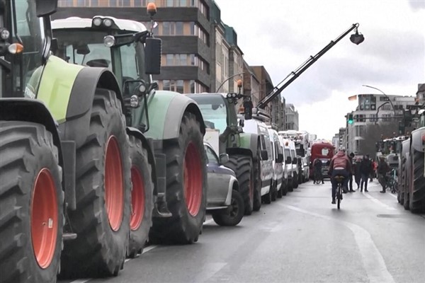 Almanya’da Çiftçiler Traktörle Berlin’de Caddeyi Trafiğe Kapattı – RayHaber