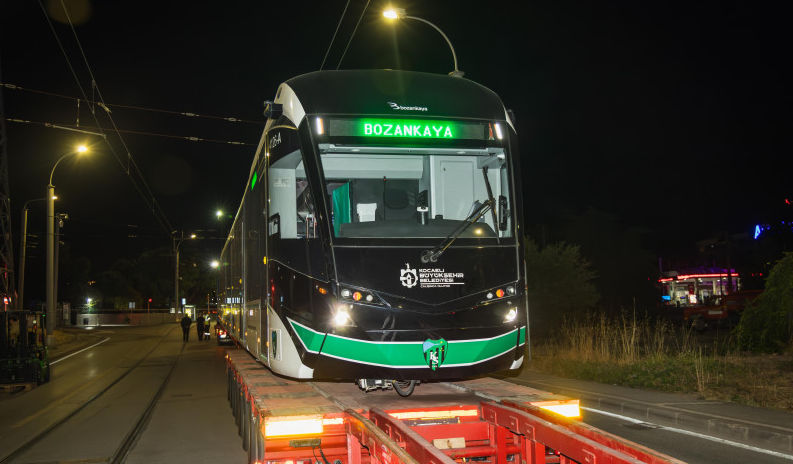 Kocaeli’de 8. Tramvay Raylarda- – Kocaeli’nin şehir içi trafiğini konforlu ve modern tramvay araçlarıyla rahatlatan Büyükşehir Belediyesi, 8’inci tramvayı da raylarla buluşturdu.