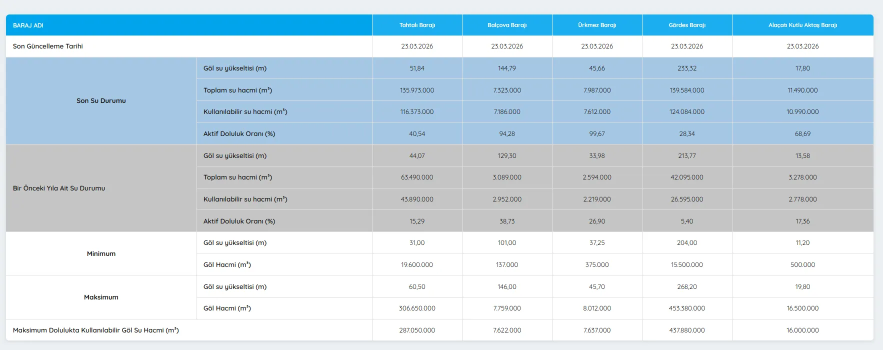 İzmir’de Baraj Doluluk Oranları Yağışlarla Yükseldi- İZSU, barajların güncel durumunu açıkladı. Su seviyeleri ve rezervuarlar hakkında son bilgileri öğrenin. – Son haftalarda etkili olan yoğun yağışlar, İzmir’deki barajların uzun süredir düşük seyreden doluluk seviyelerini önemli ölçüde iyileştirdi.
